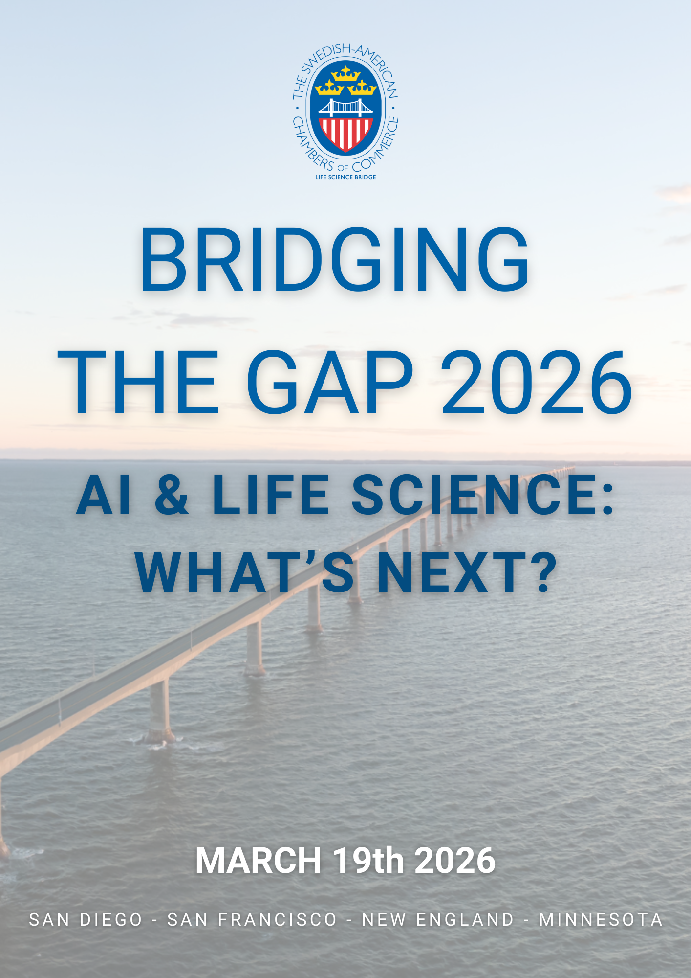 The Life Science Bridge is a joint initiative between the regional Swedish-American Chambers of Commerce in San Diego, San Francisco/Silicon Valley, New England, and Minnesota. The initiative supports life science companies by offering market insights, networking opportunities, and events that foster connections, collaboration, and knowledge exchange between Sweden and the leading U.S. life science ecosystems.